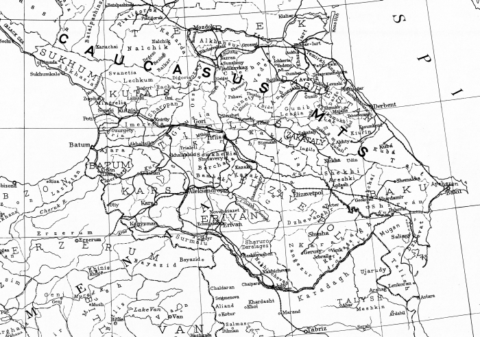 Detail I of 1919 American map of southern Russia, Ukraine, the Caucasus, and the Black Sea region Published February 23, 2015 at 700 × 492 in Debunking a Caucasian Myth ← Previous Next → Detail I Detail I of 1919 American map of southern Russia, Ukraine, the Caucasus, and the Black Sea region. Courtesy of the Stephen S. Clark Library at the University of Michigan, Ann Arbor.