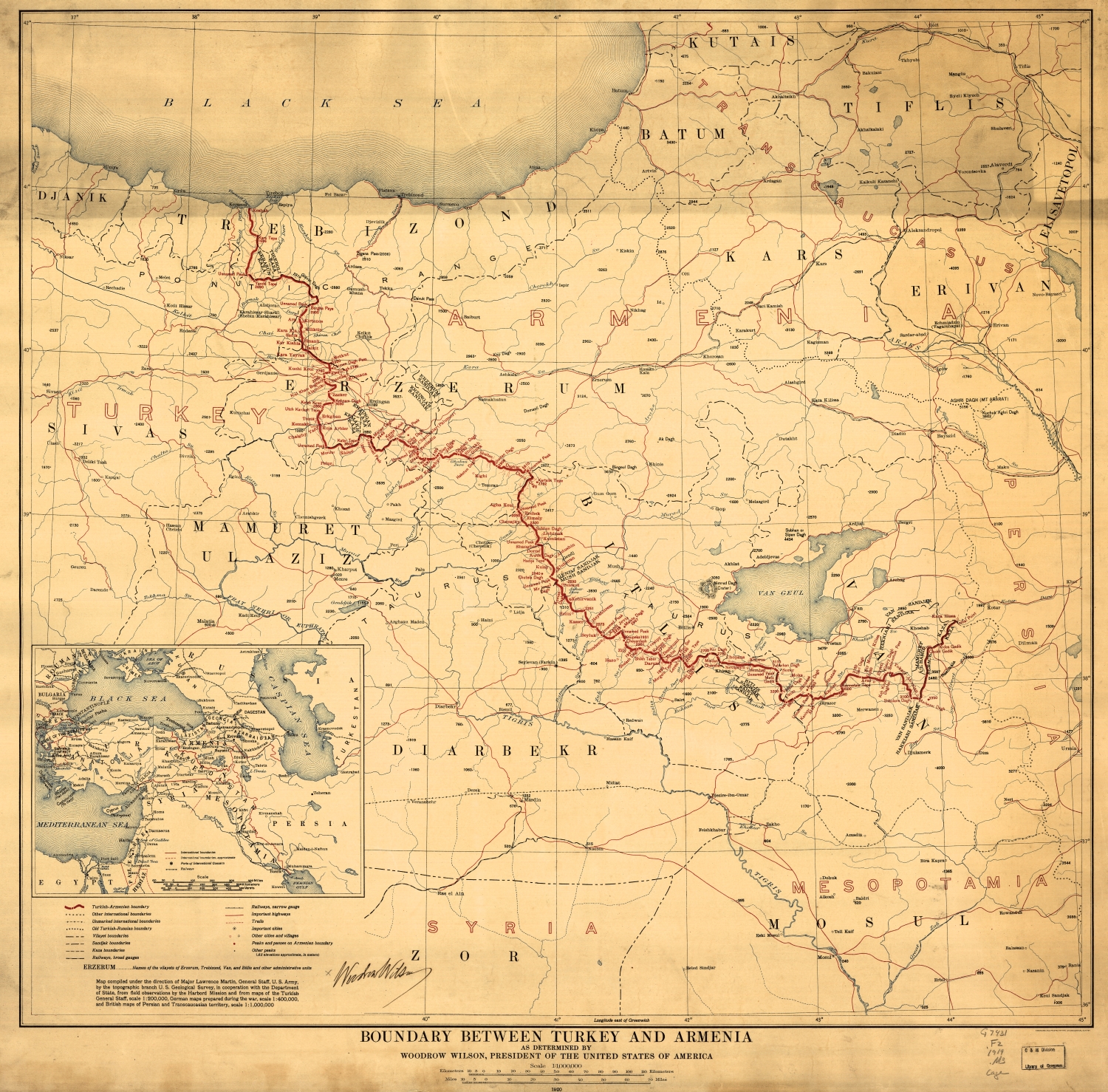 1920 American map of the proposed boundary between Turkey and Armenia determined by US President Woodrow Wilson Published March 16, 2018 at 1500 × 1478 in Debunking a Caucasian Myth ← Previous Next → Full map 1920 American map of the proposed boundary between Turkey and Armenia determined by US President Woodrow Wilson.